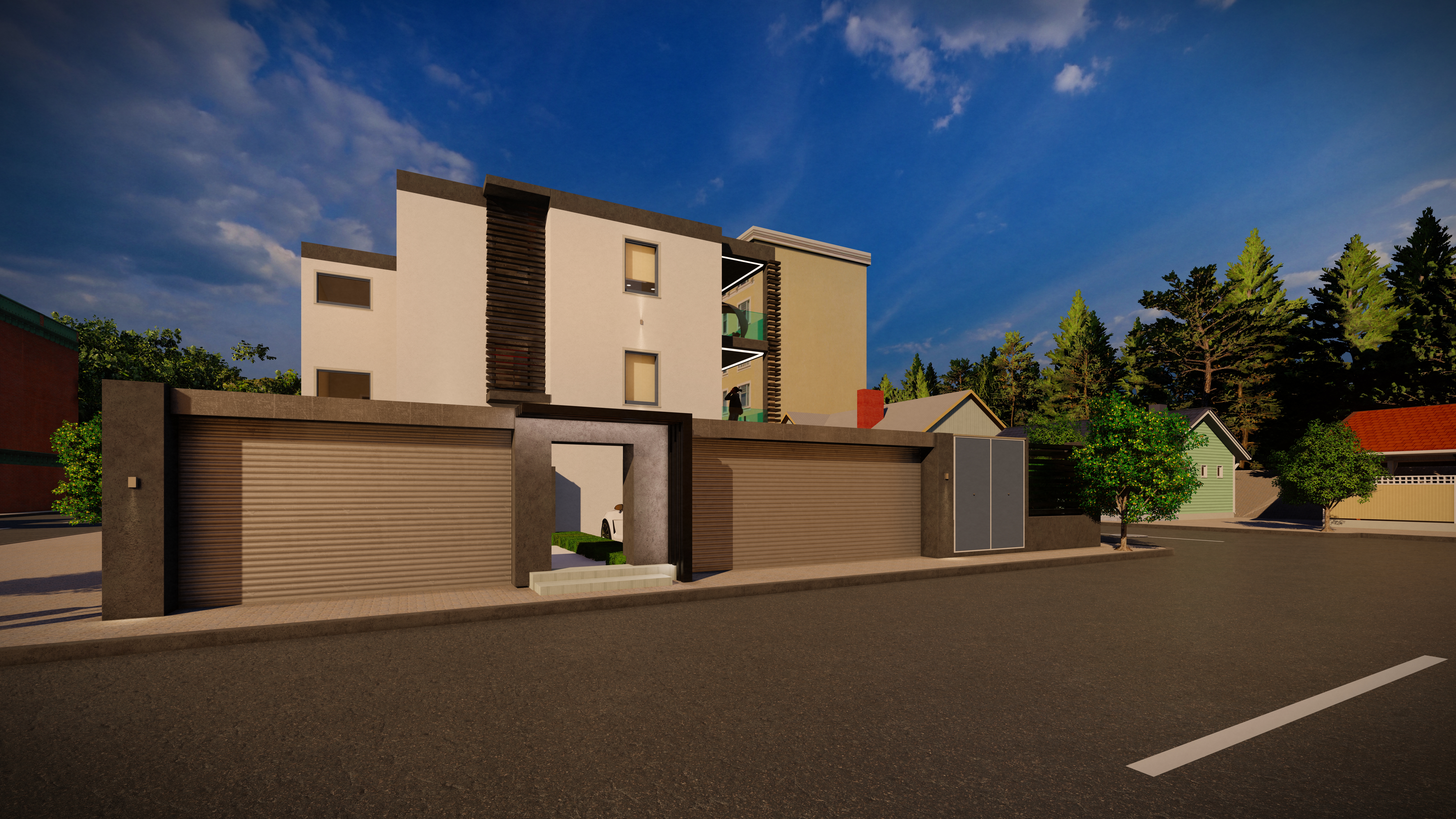 Ιδιαίτερη έμφαση δόθηκε στη σύγχρονη αρχιτεκτονική προσέγγιση, με καθαρές γραμμές, minimal σχεδιασμό και ισορροπημένες αναλογίες. Μέσα από τις ρεαλιστικές απεικονίσεις, παρουσιάστηκε με ακρίβεια η τελική εικόνα της πολυκατοικίας, συμβάλλοντας στη σωστή λήψη αποφάσεων σε όλα τα στάδια του έργου.